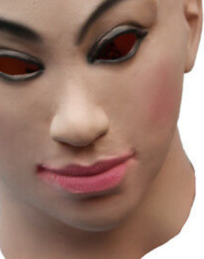 Det sidste billede viser en der har en måske på. Det kan ses omkring øjnene, men kan skjules ved at påføre makeup inden masken tages på.