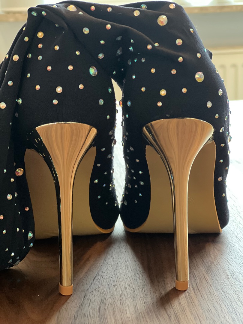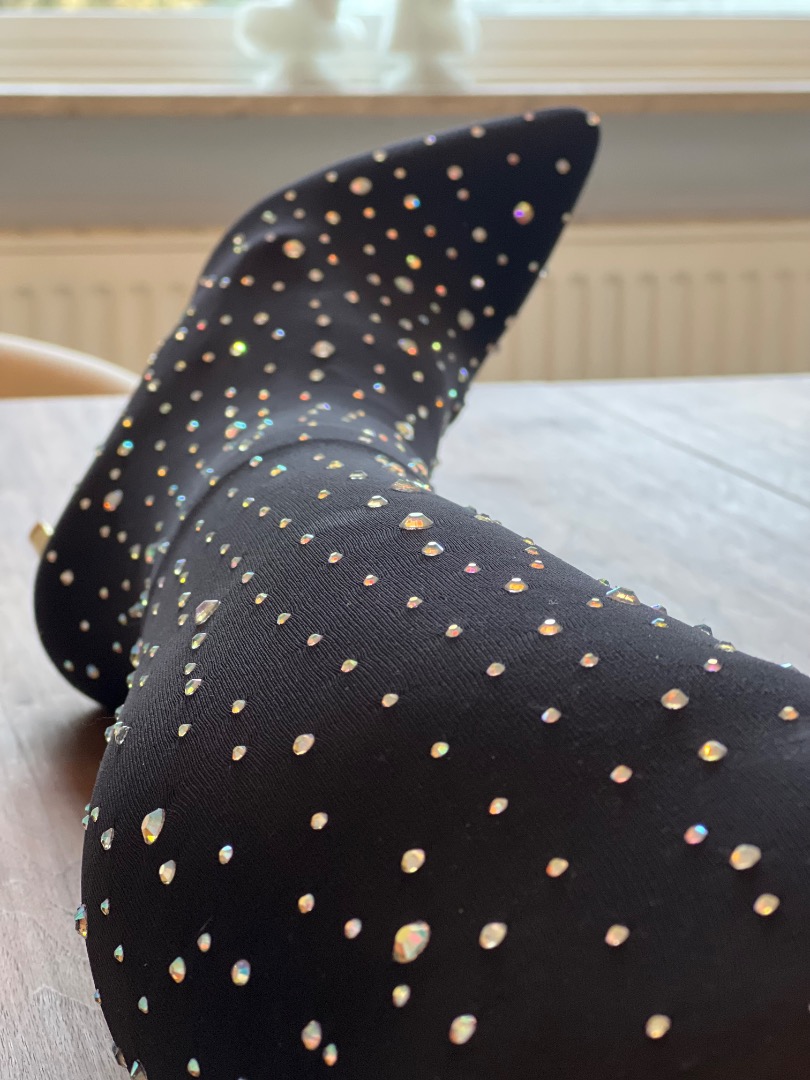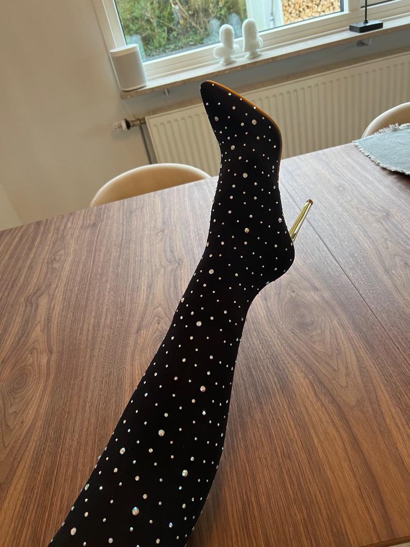 Super fede sock boots der er lårlange., Flotte guldhæle