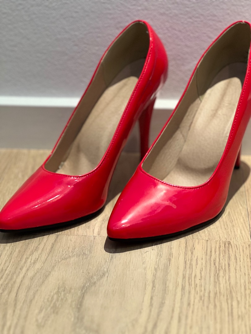 Røde lak pumps med 12 cm hæl. Passer str 44
