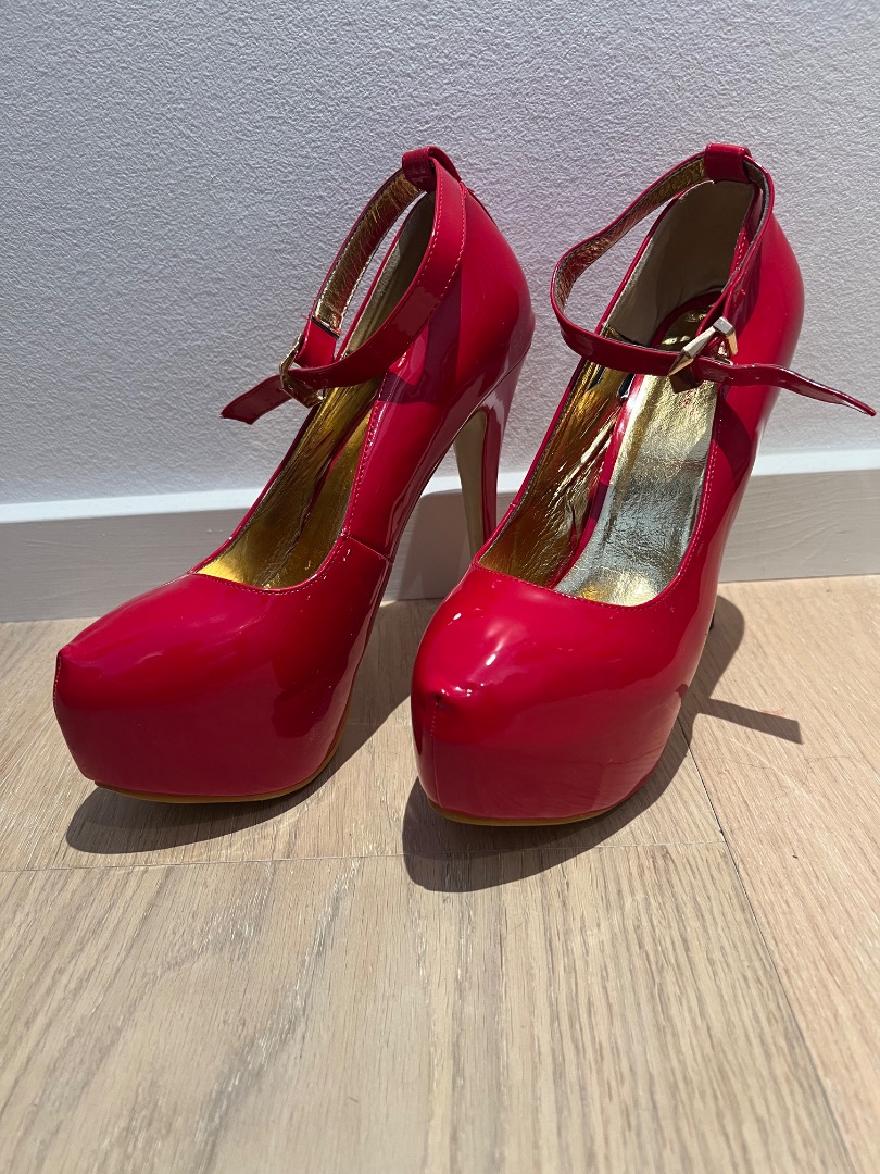Flotte sko der fremstår som nye. Indbygget plateau der føles som at gå med 10 cm hæle
